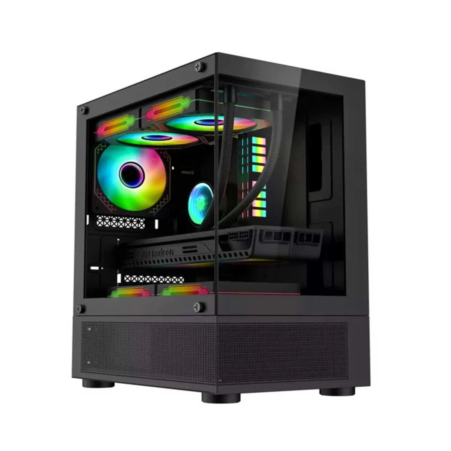 COOLMAN REYNA – BLACK | MATX SYSTEM UNIT CASE | WITH 3 PCS RAINBOW FAN BLACK (3X120mm STATIC RGB FANS) | FRONT TEMPERED GLASS PANEL | COMPACT DESIGN