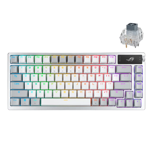 ASUS ROG M701 AZOTH NX 75% WIRELESS GAMING MECHANICAL KEYBOARD – WHITE | ROG NX SNOW SWITCH | WITH 2-INCH OLED PANEL | HOT-SWAPPABLE |TRI-MODE CONNECTION: BLUETOOTH,WIRED AND RF 2.4GHZ ADPTER | AURA SYNC RGB